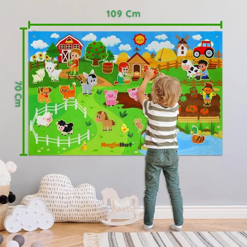 Los niños aprenden sobre animales, colores y roles en la granja de manera divertida y práctica. El material de fieltro es seguro, duradero y fácil de limpiar, lo que lo hace ideal para estimular la imaginación, la concentración y la creatividad.